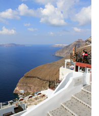 There's nothing quite like it — stark rock cliffs and postcard-perfect houses on bluffs, quaint shops and donkey carts, the blue Aegean and fiery sunsets — this must be Santorini Splendor.